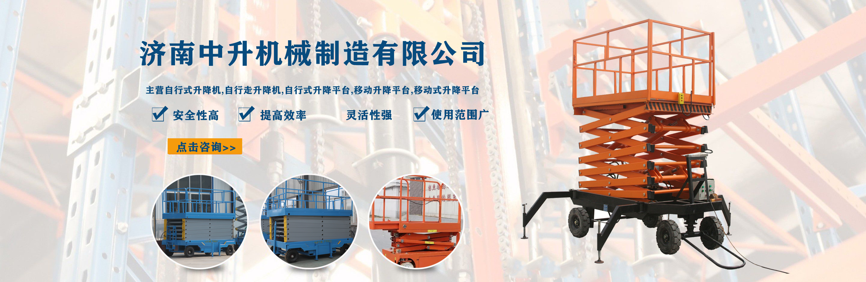 濟(jì)南中升機(jī)械制造有限公司主營自行式升降機(jī),自行走升降機(jī),自行式升降平臺,移動(dòng)升降平臺,移動(dòng)式升降平臺等產(chǎn)品,產(chǎn)品廣泛用于廠房維護(hù)、工業(yè)安裝、設(shè)備檢修、物業(yè)管理、倉庫、航空、機(jī)場、港口、車站、加油站、體育場、展覽館等多種行業(yè)和場所, 公司設(shè)備精良、工藝合理、檢測手段齊全,技術(shù)力量充足,公司創(chuàng)立伊始即本著“專注、專心”的經(jīng)營理念,依托技術(shù)團(tuán)隊(duì)優(yōu)勢和設(shè)備硬件保障,全力打造良心的升降平臺企業(yè)。 我公司始終以“品質(zhì)為本,服務(wù)至上”作為企業(yè)宗旨。只要你訂購了我公司的產(chǎn)品,無論你身處何方,我們都會(huì)及時(shí)派出技術(shù)人員為你服務(wù)!...